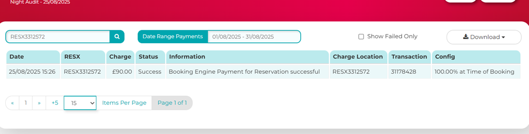 On the charge tab on the RESX screen you will see a new area outlining the status for Automatic Payments. You can change the status of the APS this will mainly used for manual booking, so they can be “Set to not required” or “Set to Pending”