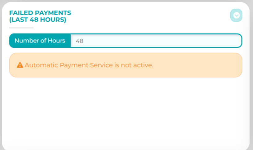 Update to Number of Hours for Failed Payments on the Dashboard.