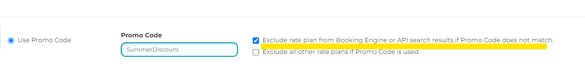 Setting 1: Exclude rate plan from Booking Engine or API search results if promo code does not match.