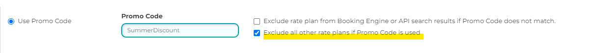 Setting 2: Exclude all other rate plans if Promo Code is used