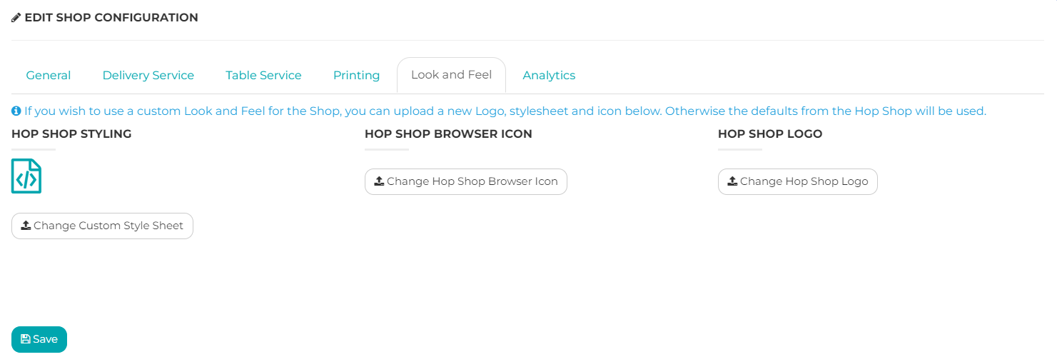 Either way, if you wish to display an alternative logo on your Shop, simply head to Shop > Configuration and click on the 'Look and Feel' tab, where you will be able to upload an image file of your choice: