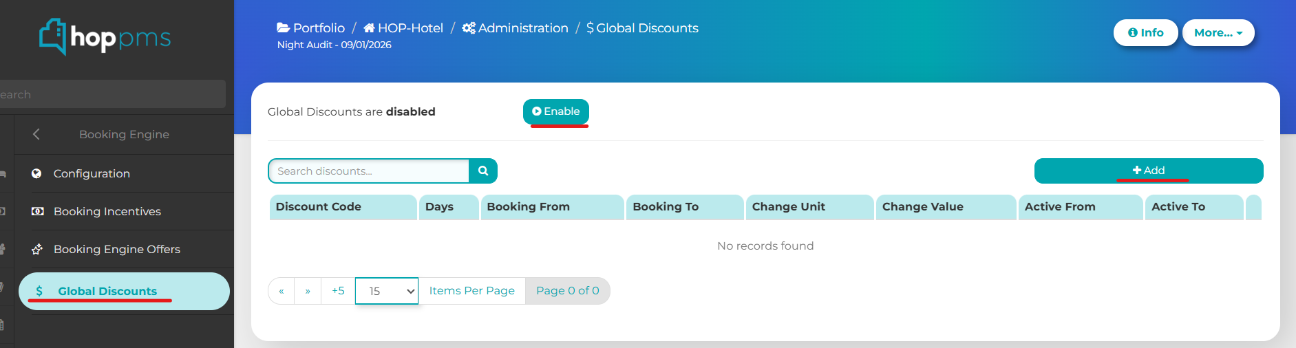 To do this go to Administration > Booking Engine > Global Discounts.