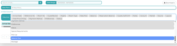 Custom fields can be added as columns to both the Arrivals and Reservations reports.